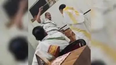 वेद विद्यालय में शिक्षक की पिटाई, छात्र को छड़ी से पीटा; CCTV में कैद