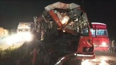 टूरिस्ट बस-डंपर टक्कर, खिड़की तोड़कर 57 को बचाया गया