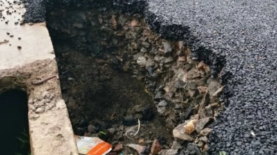 देवभोग में NH-130 की सड़क पहली बारिश में धंसी, निर्माण एजेंसी पर सवाल
