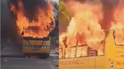 इंदौर में चलती स्कूल बस अचानक बनी आग का गोला, गनीमत रही कि सभी बच्चे सुरक्षित बाहर निकाल लिए गए