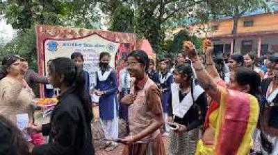परीक्षा का पहला दिन: परीक्षार्थियों को टीका लगाकर दी गई शुभकामनाएं