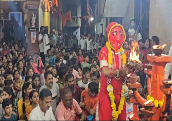 बुधवार तड़के मां अम्बे खप्पर और तलवार धारण कर निकलीं, जबकि गुरुवार सुबह 4:30 बजे मां महाकाली सिंह पर सवार होकर भक्तों को दर्शन देने आईं। उनके एक हाथ में तलवार और दूसरे हाथ में जोगनी का सिर था। मंदिर परिसर में लगभग 40 मिनट तक भक्तों ने मृदंग और झांझ पर पारंपरिक निमाड़ी गरबियां गाईं। जयकारों से वातावरण गूंज उठा। इन गरबियों को 300 साल पुरानी क्षेत्रीय भाषा में गाया गया, जिनमें देवी के प्रति गहन भक्ति भाव झलकता है।