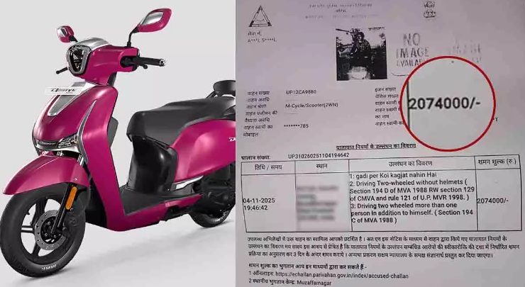 मुजफ्फरनगर: हेलमेट न पहनने पर स्कूटर चालक को मिला 20.74 लाख का चालान, बाद में ठीक किया गया