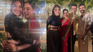 रश्मिका मंदाना और विजय देवरकोंडा अपनी शादी को लेकर सुर्खियों में हैं। दोनों ने 26 फरवरी को राजस्थान के उदयपुर में शादी की। चार मार्च को हैदराबाद में उनका रिसेप्शन था। रिसेप्शन में कई फिल्मी सितारे पहुंचे। करण जौहर ने इनसाइट फोटो शेयर किया है। इस मौके पर रश्मिका की अपकमिंग फिल्म 'कॉकटेल 2' की साथी कलाकार कृति सेनन, फिल्म के निर्देशक होमी अदजानिया भी नजर आए।