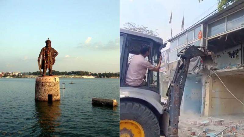 भदभदा से शुरू हुआ अतिक्रमण हटाओ अभियान, बड़ा तालाब किनारे अवैध निर्माण पर कार्रवाई