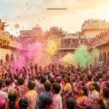 बरसाना में श्रद्धालुओं पर लड्डुओं की वर्षा, उत्सव का भव्य दृश्य