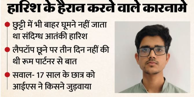 बता दें कि, एटीएस ने हारिश को आज सुबह लखनऊ जेल से अपनी अभिरक्षा में लेने के बाद गहन पूछताछ की। इससे पहले एटीएस ने हारिश के साथ बीडीएस का कोर्स करने वाले छात्रों से भी उसकी गतिविधियों के बारे में जानकारी जुटाई थी। उन्होंने बताया कि हारिश की गतिविधियां संदिग्ध थीं।