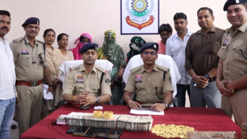 आरोपियों से पूछताछ के दौरान मामले में शामिल अन्य आरोपियों के प्रयागराज मे होने की जानकारी दी गई. पुलिस टीम को इस पर प्रयागराज उत्तर प्रदेश रवाना किया गया, पुलिस टीम द्वारा प्रकरण में शामिल सुनीता गुजराती पति रवि गुजराती उम्र 35 वर्ष साकिन धांगतरा गुजरात हाल मुकाम भावपुरा थाना करौली प्रयागराज उत्तरप्रदेश (04) कमला गुजराती आत्मज पप्पू गुजराती उम्र 45 वर्ष साकिन धींगतरा गुजरात का होना बताए. आरोपियों को प्रयागराज से अभिरक्षा मे लेकर घटना के सम्मका में पूछताछ किये जाने पर घटना कारित किया जाना स्वीकार किया गया, आरोपियों के कब्जे से 12.53 लाख रुपये नगद रकम एवं सोने का एक कडा लगभग 50 ग्राम बरामद किया गया|