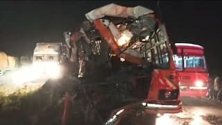 टूरिस्ट बस-डंपर टक्कर, खिड़की तोड़कर 57 को बचाया गया