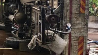 ट्रक का टायर फटा, पलटा टैंकर… हाईवे पर अफरा-तफरी