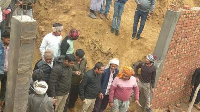 दीवार ढहने से बड़ा हादसा, 60 फीट गहरे बेसमेंट में दबे मजदूर
